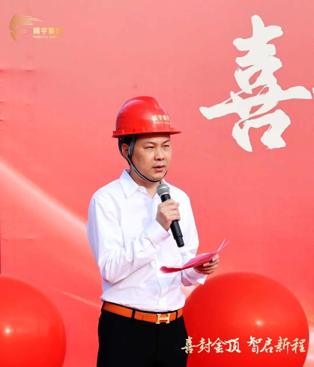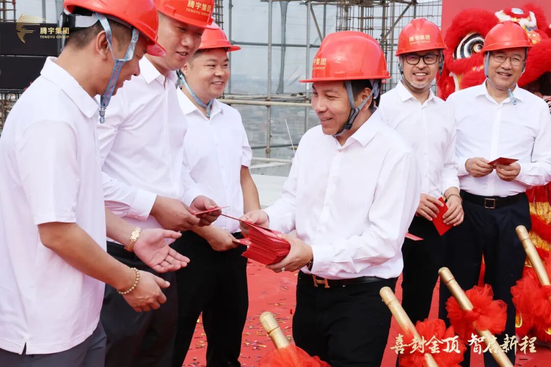 封顶仪式现场,高朋齐聚,盛况空前。腾宇集团董事长戴城男先生、总经理戴成腾先生、总裁戴成方先生、多位战略合作伙伴代表及各界嘉宾齐聚一堂,共同见证这一里程碑的荣耀时刻!